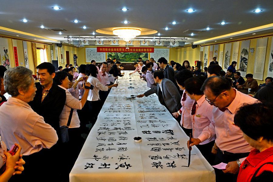 杨贤兴 两岸翰墨情(组照一:台湾百人文化交流团长卷签名 ) 拍摄时间: 2013.11.16 拍摄地点:萧山湘野农庄